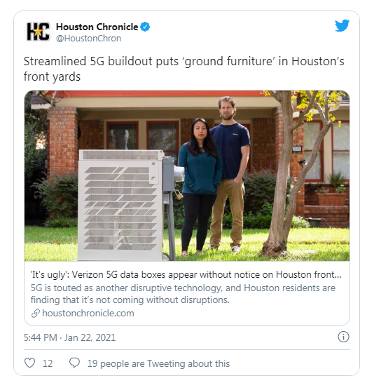 When most people look out their windows in the morning, they likely aren’t expecting to be surprised by a chest freezer-sized box that’s feeding a 5G antenna, but that’s the exact experience some Houston residents have been having. Verizon has been installing the boxes as part of its 5G network rollout since at least 2019, and from the reporting done by the Houston Chronicle, it seems as if it’s been anything but smooth.